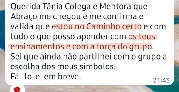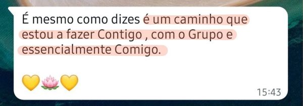 O grupo do Whatsapp está ativo e vivo para partilhas e dúvidas e eu estarei lá a dar suporte a sustentar o campo do grupo.